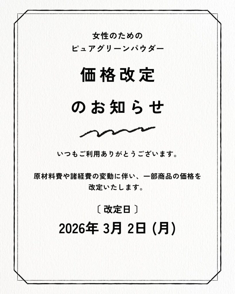 誠に心苦しい限りではございますが、このたび商品の価格改定させていただく運びとなりました。